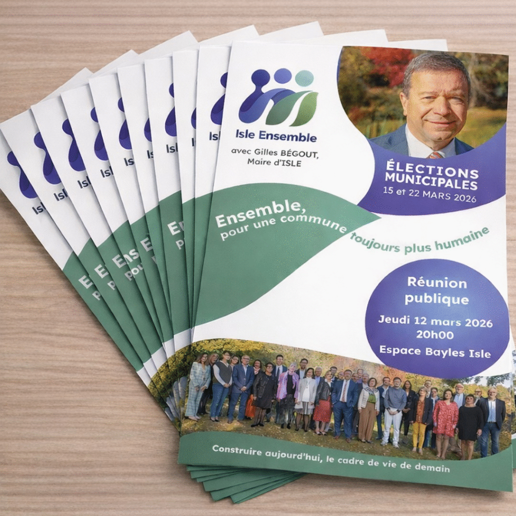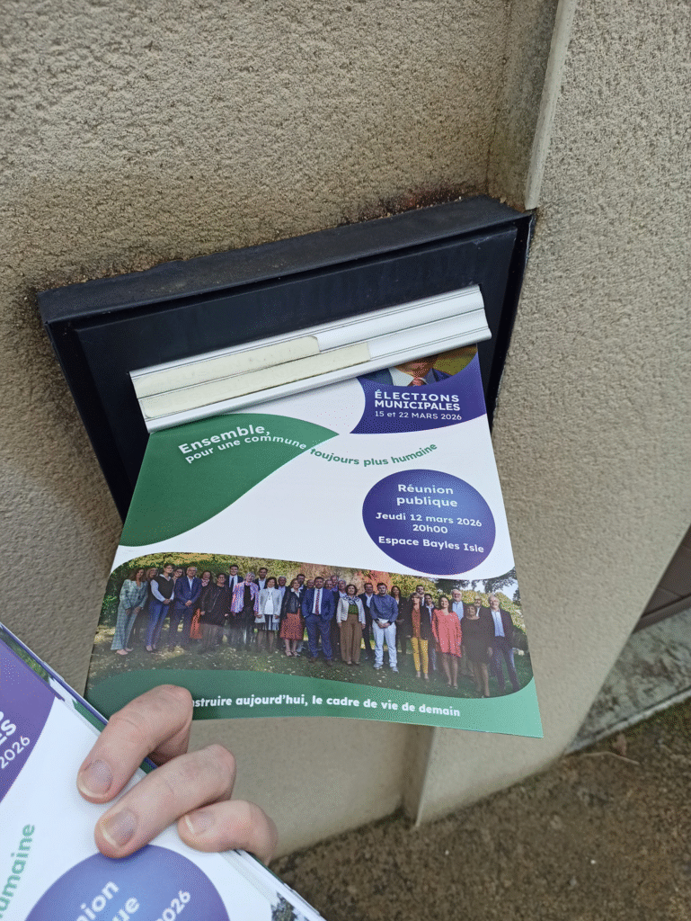 Il vous invite aussi à participer à notre réunion publique du jeudi 12 mars 2026 à 20h, à l’Espace Bayles Isle. Au cours de cette rencontre, notre programme sera présenté en détail et vous pourrez poser toutes vos questions. Un moment convivial viendra clôturer la réunion.