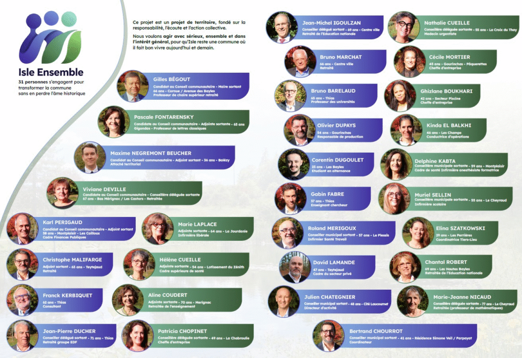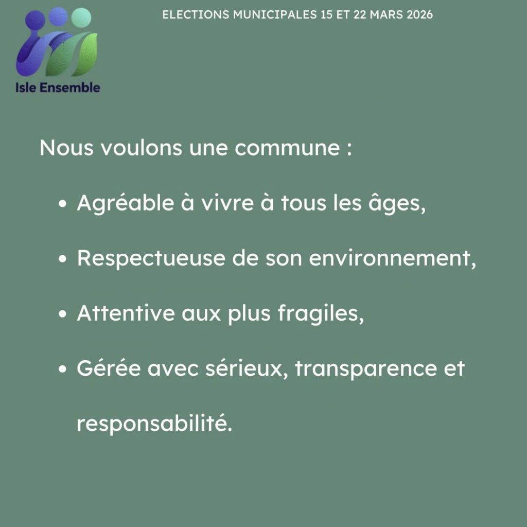 Notre engagement est clair : agir avec sérieux, ensemble, et toujours dans l’intérêt général, pour qu’Isle reste une commune où il fait bon vivre aujourd’hui et demain.